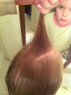 Ok - so... I realize this is a really sad picture, but this is how her tiny hair turned out. She wasn't too happy with it (obviously)! We ended up wetting it down and putting it in pigtails for the day. Bummer.